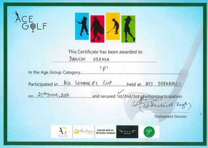 1st prize at Panchkula golf club on July 30, 2017. Played two over in nine holes in "F" category