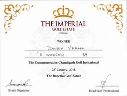 First Prize at Imperial Golf Course Mullanpur. Played 3 over in E category on November 11, 2018.
